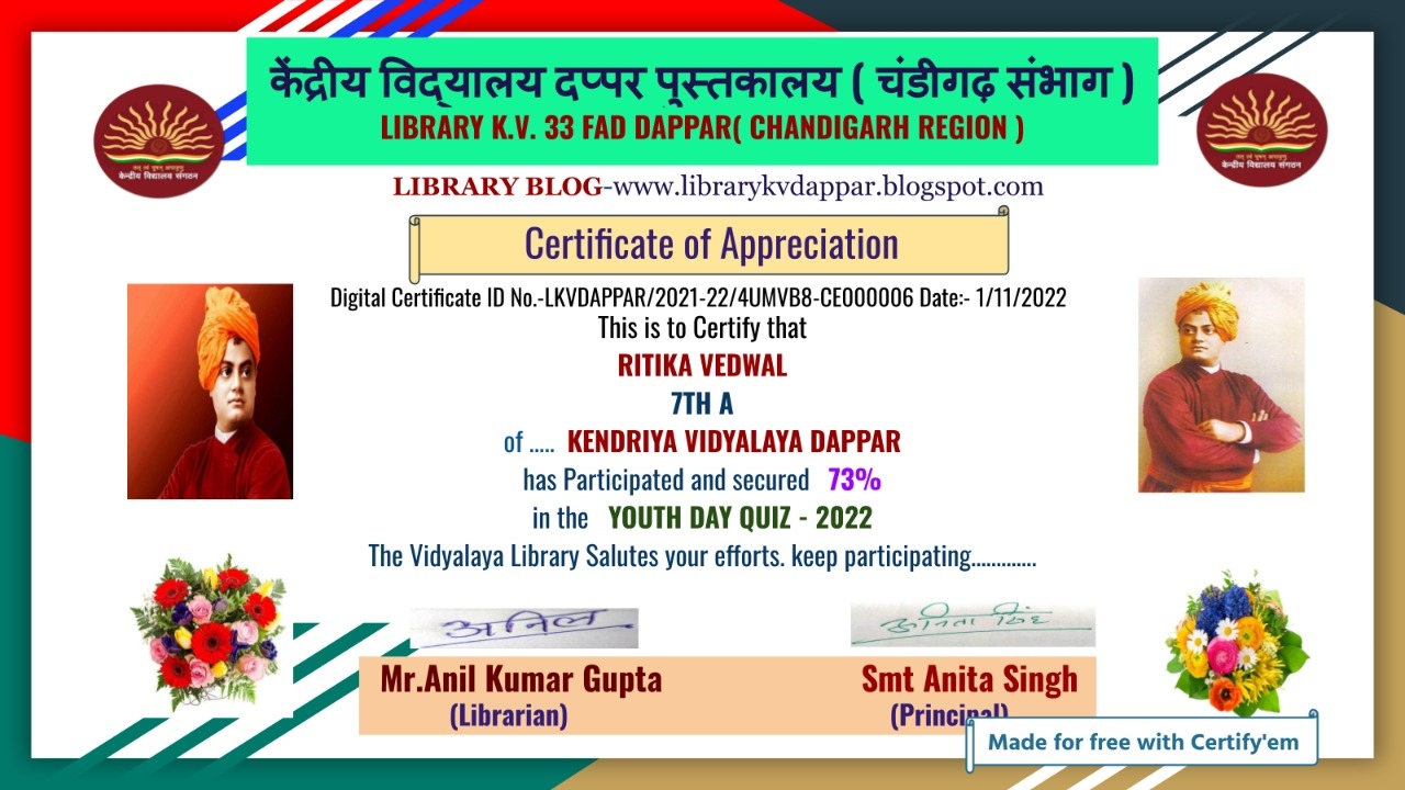WELCOME TO PM SHRI KENDRIYA VIDYALAYA 33 FAD DAPPAR DIGITAL LIBRARY (CHANDIGARH REGION)